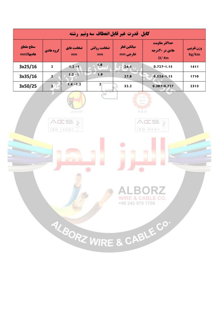 استانداردها: IEC 60502-1 , VDE-0271, ISIRI 3569-1